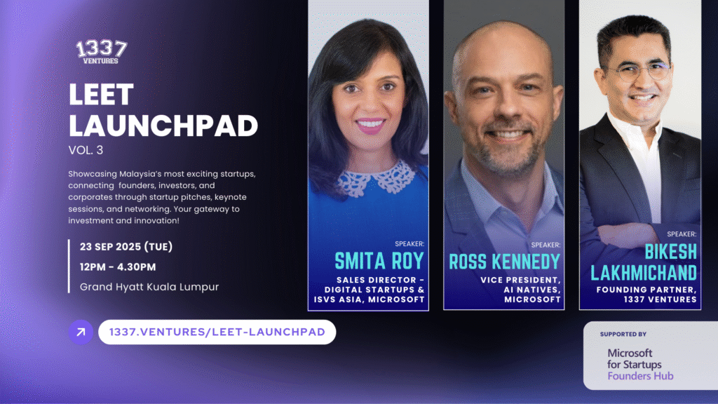 Leet Launchpad is a quarterly event spotlighting Malaysia’s most promising startups, offering visibility, investment opportunities, and strategic partnerships. Organized by 1337 Ventures and supported by Microsoft for Startups Founders Hub, it brings together visionary founders, investors, and industry leaders through startup pitches, thought-provoking keynotes, and high-impact networking.